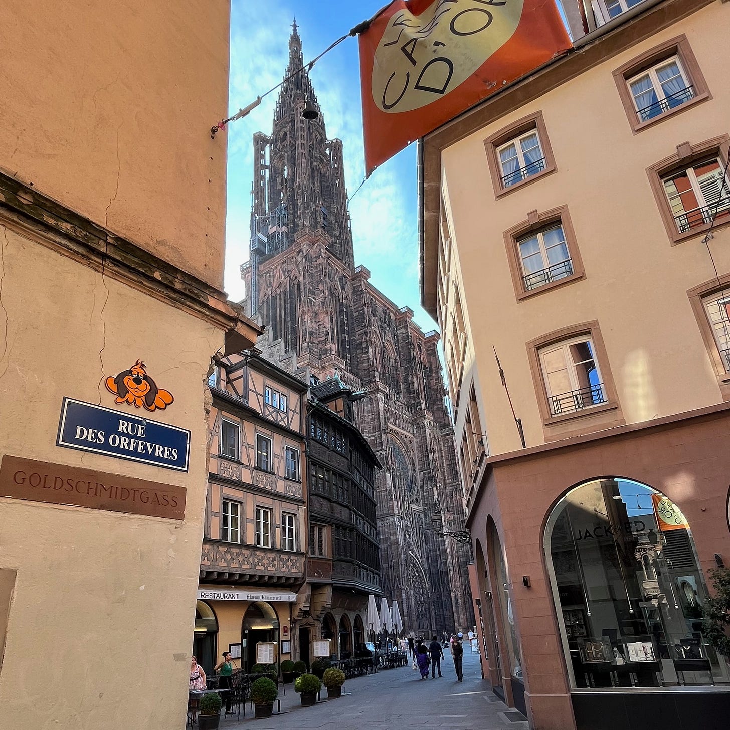 Walking around in a foreign place for the first time, you carry with you an anticipation that the next corner will reveal the extraordinary. And I got this. Cathédrale Notre dame de Strasbourg. That first view is one thing, but then you get close and stand below. It is overwhelming, intricate and massive. It stands over you with the same weight as if encountering the faun of Pan’s Labyrinth. It is just the right height to make you feel dwarfed for eternity. And to think that it has been around for close to 500 years. If it inspires awe now, how could those who walked in its shadow at that time fail to be drawn in?