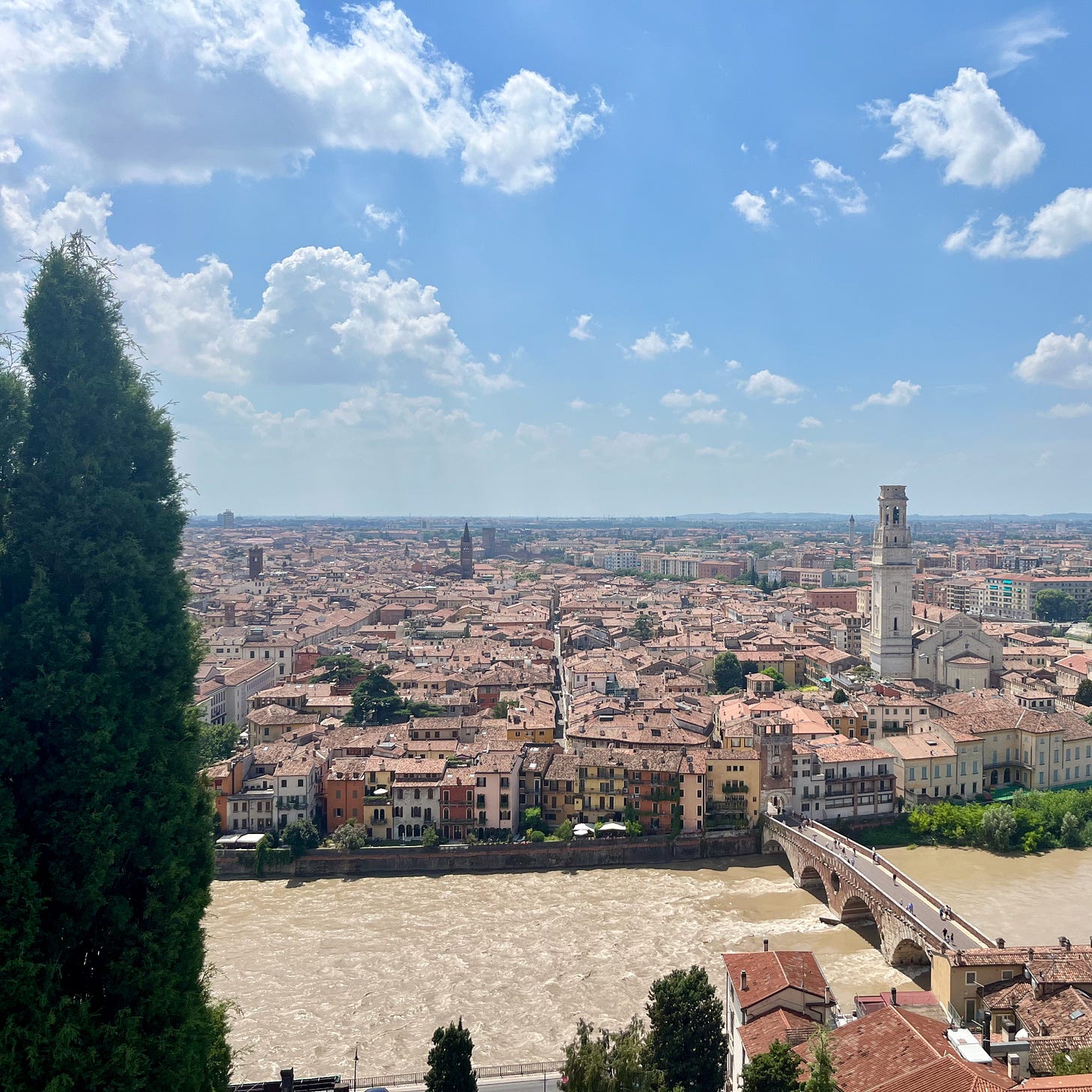 Queue #3 A charming view of Verona? Get yourself to the Castel San Pietro. But don’t walk, queue up for the funicular - the automated see through box that squishes you in with 30 other sweaty tourists (plus their babies) and crawls its way to the top of the hill where the castle sits and you can enjoy the gaze upon the mini-majestic town.