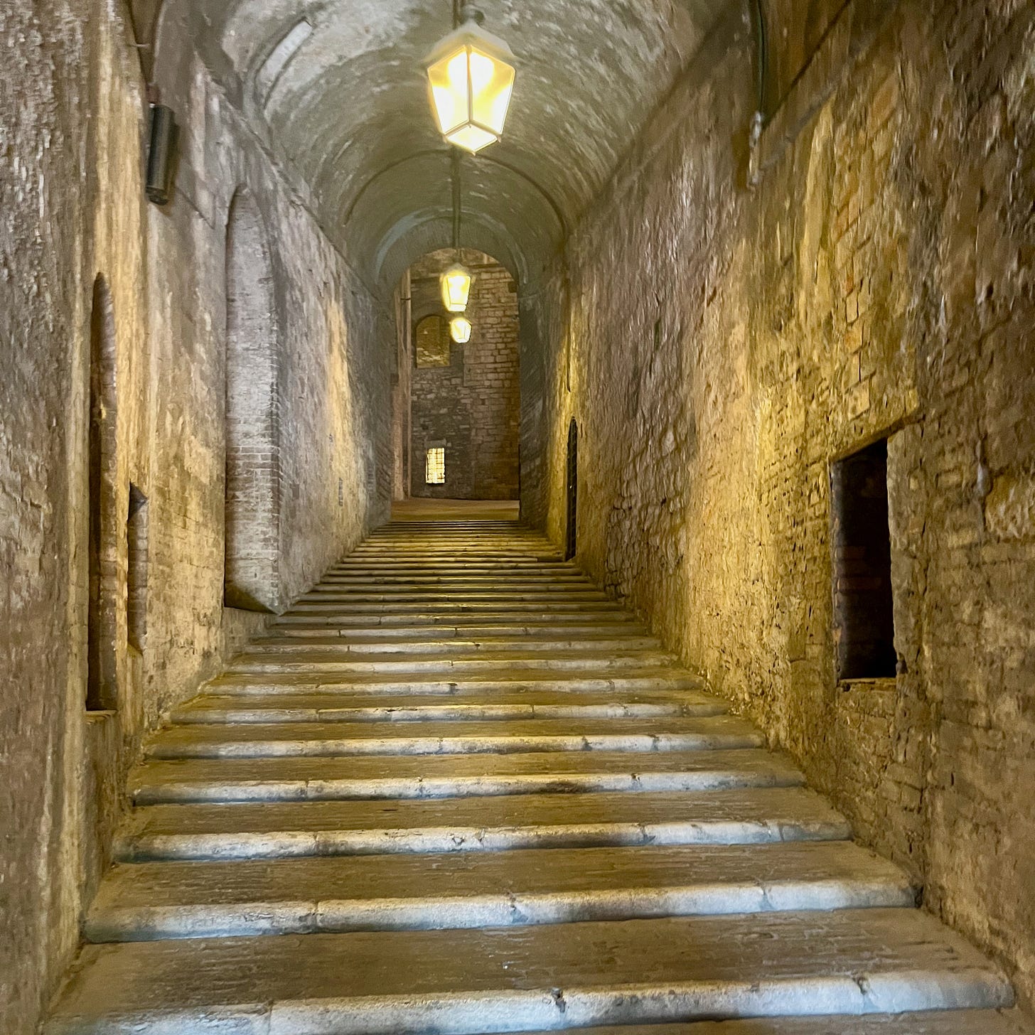 You are surrounded by them when you visit the underground Umbria. The Rocca Paolina, old fortress now both shopping and exhibition arcade, that running partly under the city centre, with an escalator that cuts right through it.