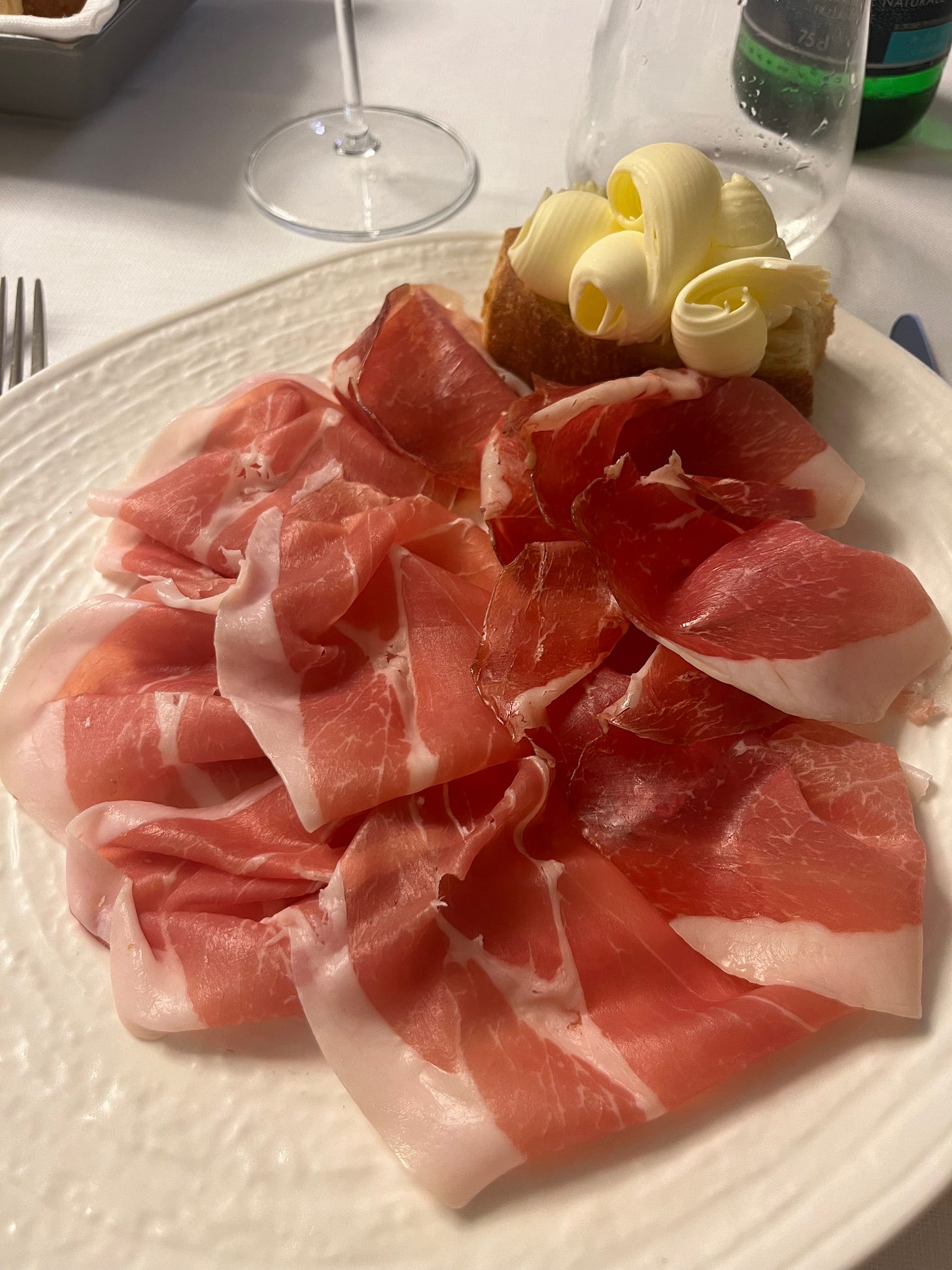In nearby Parma the next day, I skip the sightseeing around piazzas and decide to treat myself to an authentic lunch that is not a sandwich nor a panini. In a classic Parma restaurant I order the individual ingredients: ham, risotto and the whippiest of all butters. I also find out, that this restaurant, with the local specialities, the owner moved here from the south of Italy.