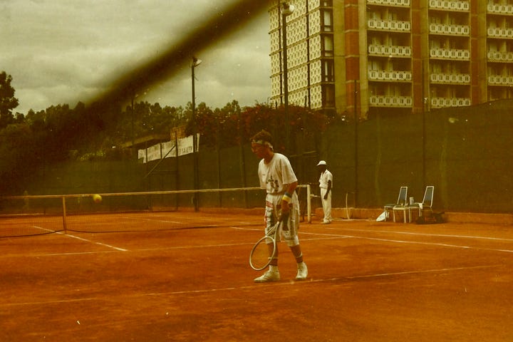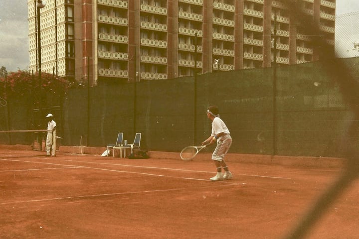 There was a tennis tournament at the Addis Hilton Hotel when I was 10 or 11. I was very excited, had detailed daydreams of winning the whole thing. I had the green Prince racquet and all the gear, the wristbands and the water bottle, even made a bandana to look Agassi-ish. All of that. It was my first tournament and I was ready to reveal my thus far unseen tennis talent.