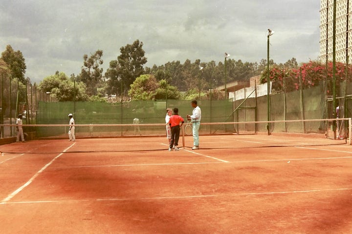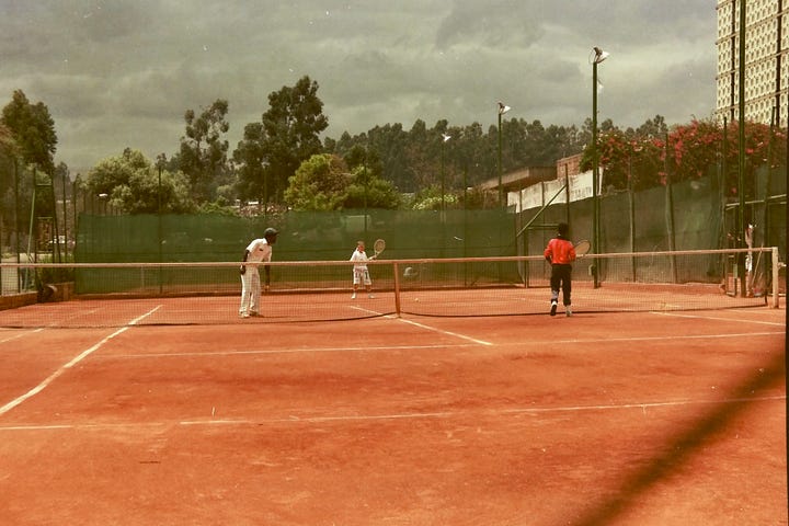 When we got to Addis Ababa in 1991, there was a place called the Yugoslav Friendship Club (Yugo Club for short). It was probably those mid 20th century socialist non-aligned ties between the two countries that led to its existence. It had a community hall for events-parties-barbecues, a garden, and a solitary tennis court of orange clay. Late afternoon, post school, the family, we would get in our white Toyota Corolla and make our way down Bole road and turn left before the airport to play.